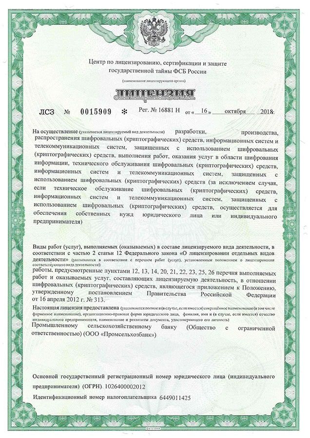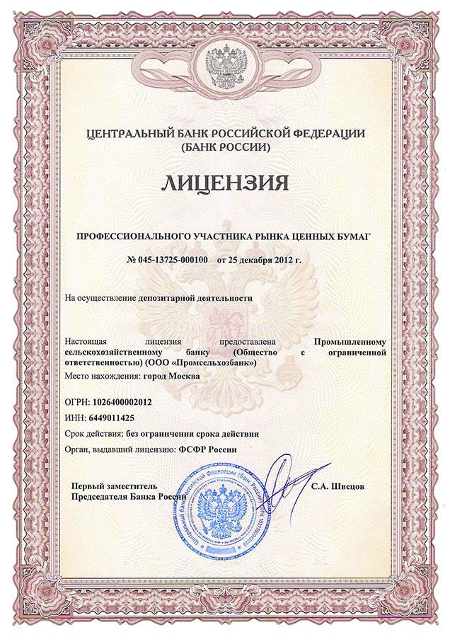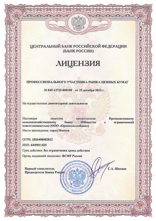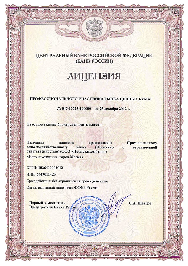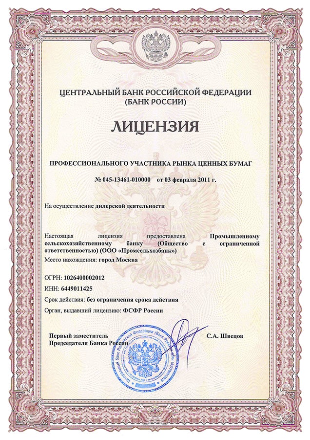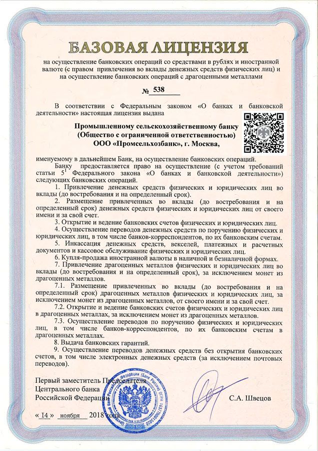 • Базовая лицензия Банка России